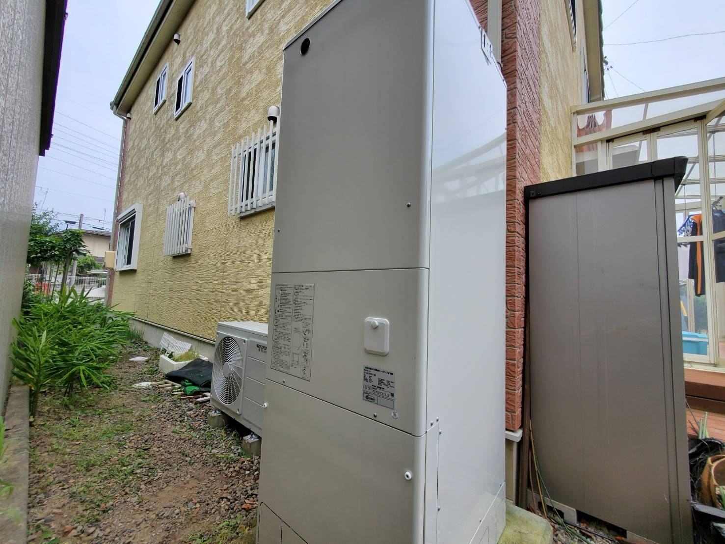 施工事例:下呂市 コロナ自然冷媒CO2家庭用ヒートポンプ給湯器貯湯ユニットCTU-37AY2K、ヒートポンプユニットCHP-Y452K