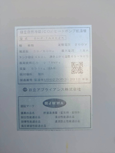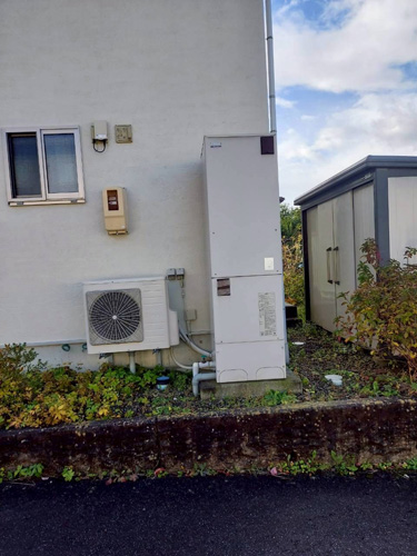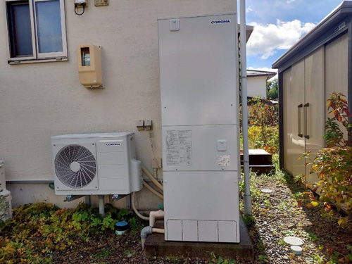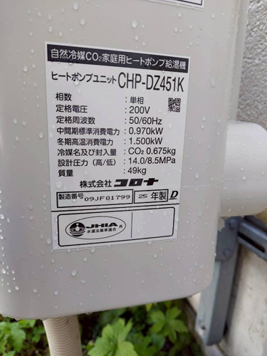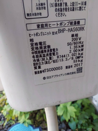 恵那市明智町 日立家庭用ヒートポンプ給湯機ヒートポンプユニットBHP-HAS60RK、自然冷媒CO2ヒートポンプ給湯機BHP-TA462K→コロナ自然冷媒CO2家庭用ヒートポンプ給湯機ヒートポンプユニットCHP-DZ451K エコキュート交換工事