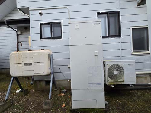施工事例:東白川村 コロナ自然冷媒CO2家庭用ヒートポンプ給湯機 ヒートポンプユニットCHP-DZ451K エコキュート交換工事