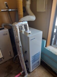 施工事例:笠松町 コロナ石油給湯機付ふろがまUKB-SA472A(FF) 給湯器交換工事